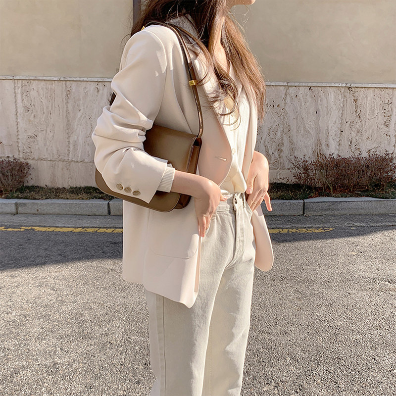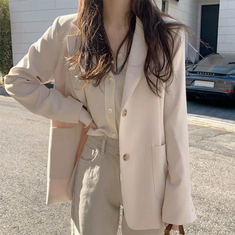 White suit jacket female spring and autumn thin section Korean version loose with small sub-reduced-age fried street net red explosive with western coat blouse