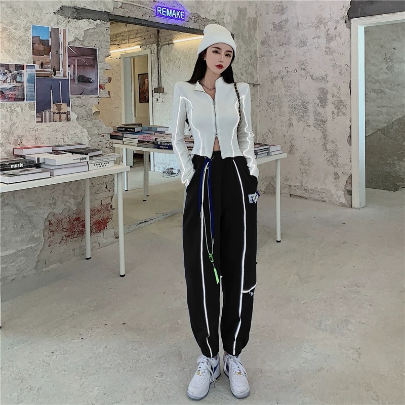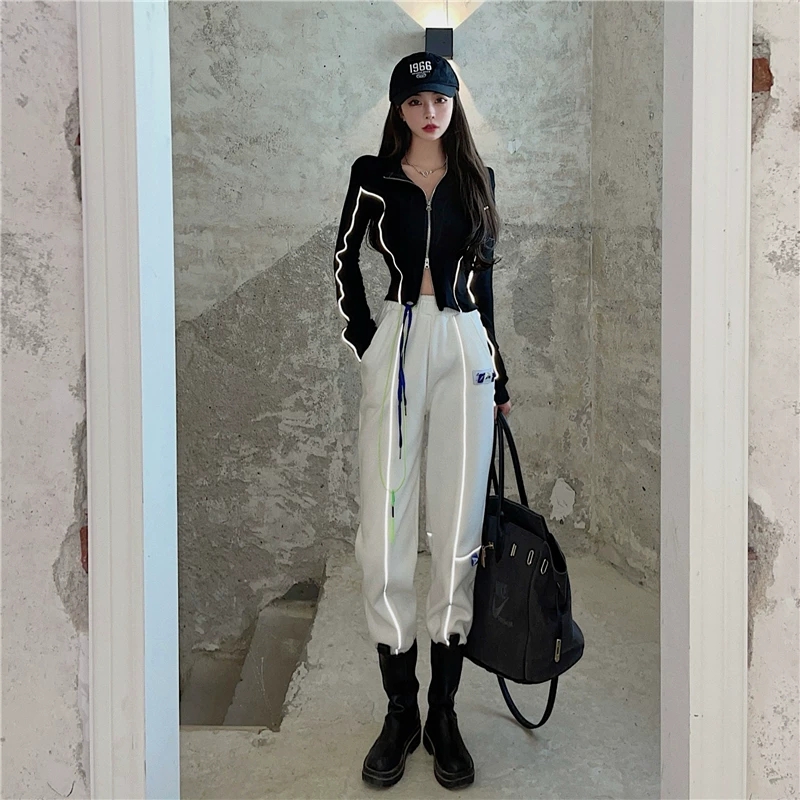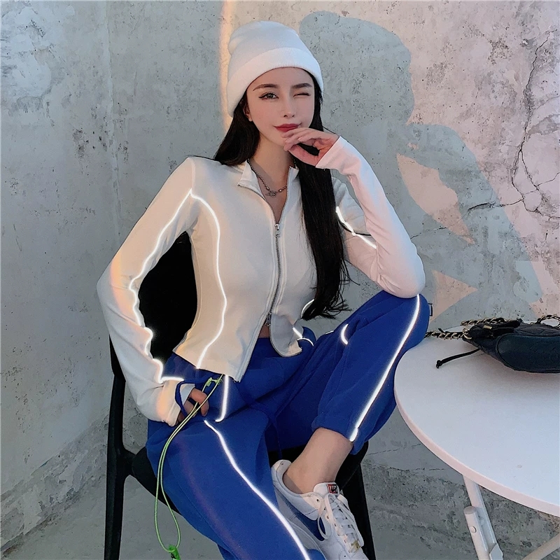 Casual fashion suits 2021 new women's spring cool salt series net red fried street blue trousers sports two-piece suit
