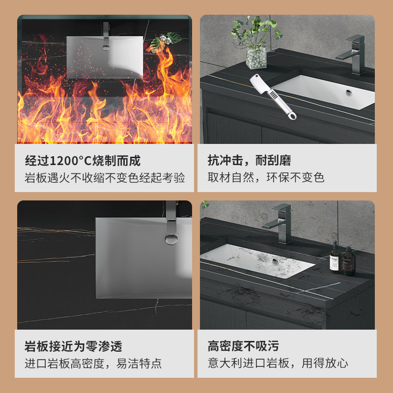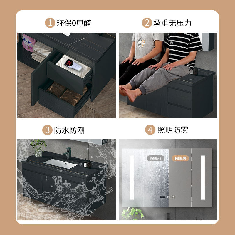 Solid Wood Bath Cabinet Combined Bathroom Suit Light Lavish Makeup Room Rock Plate Wash Wash Face Wash Table Basin Cabinet Integrated Basin
