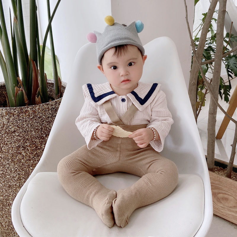 Baby pantyhose spring and autumn style high waist belly support overalls big pp fart pure cotton men's leggings female baby pants