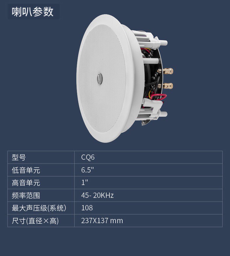 Hivi Whi Wai CQ6-TB Wireless Bluetooth Suction Ceiling Smallpox Horn 6 5 Inch Coaxial Background Music Suspended Ceiling Speaker