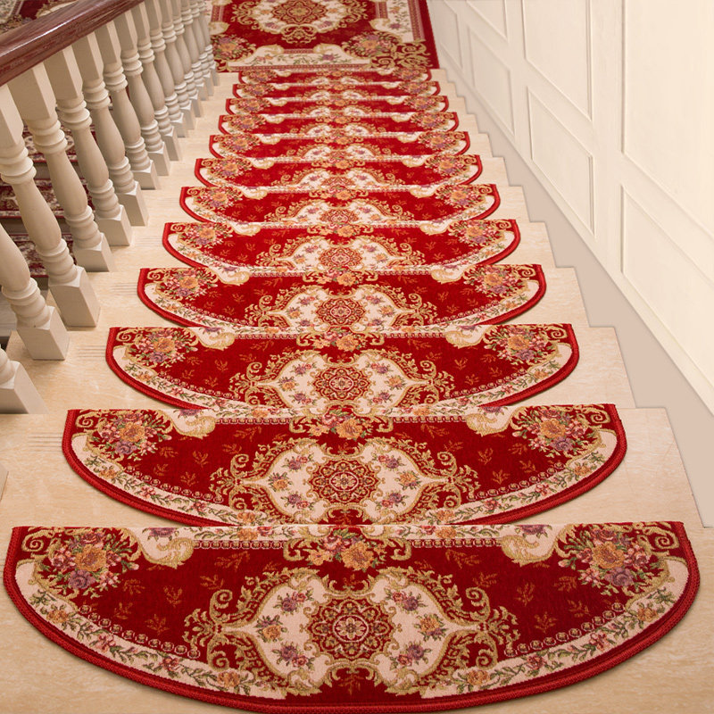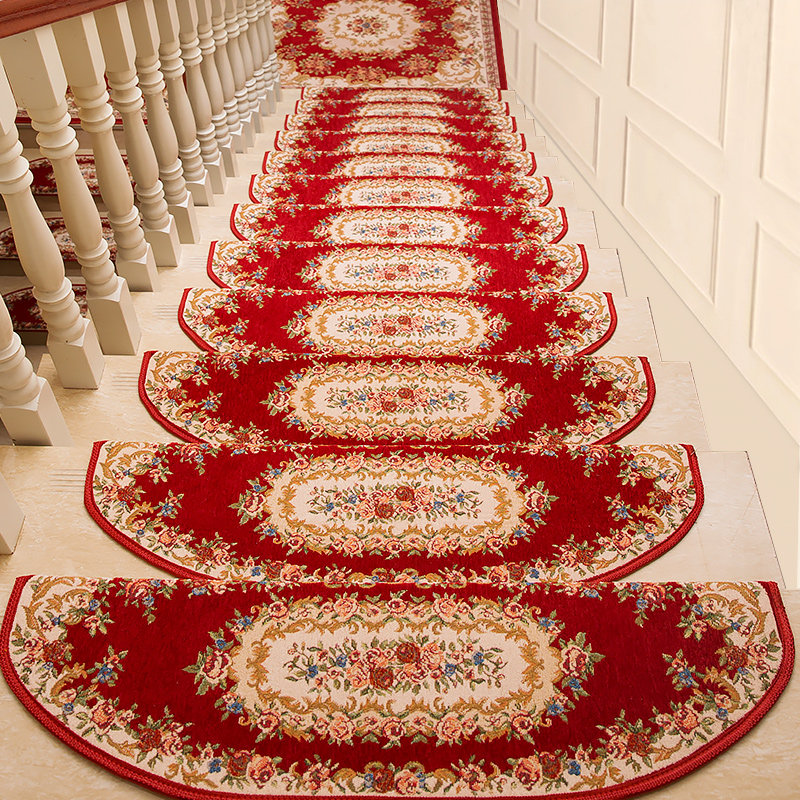 European-style stair step mat glue-free self-adhesive home non-slip stair carpet rotating solid wood stair custom foot mat