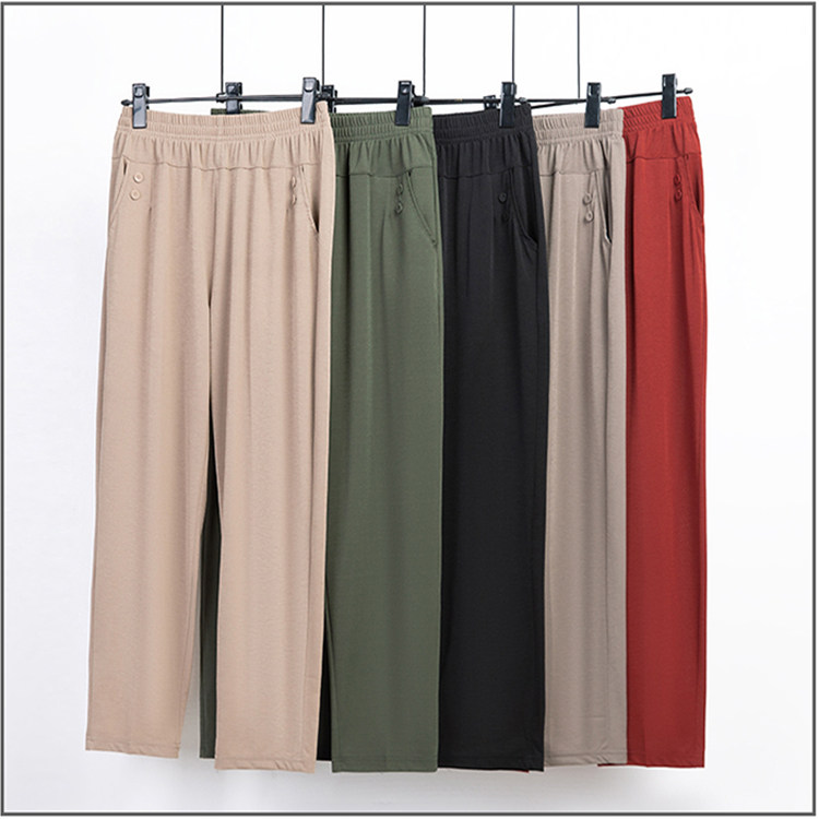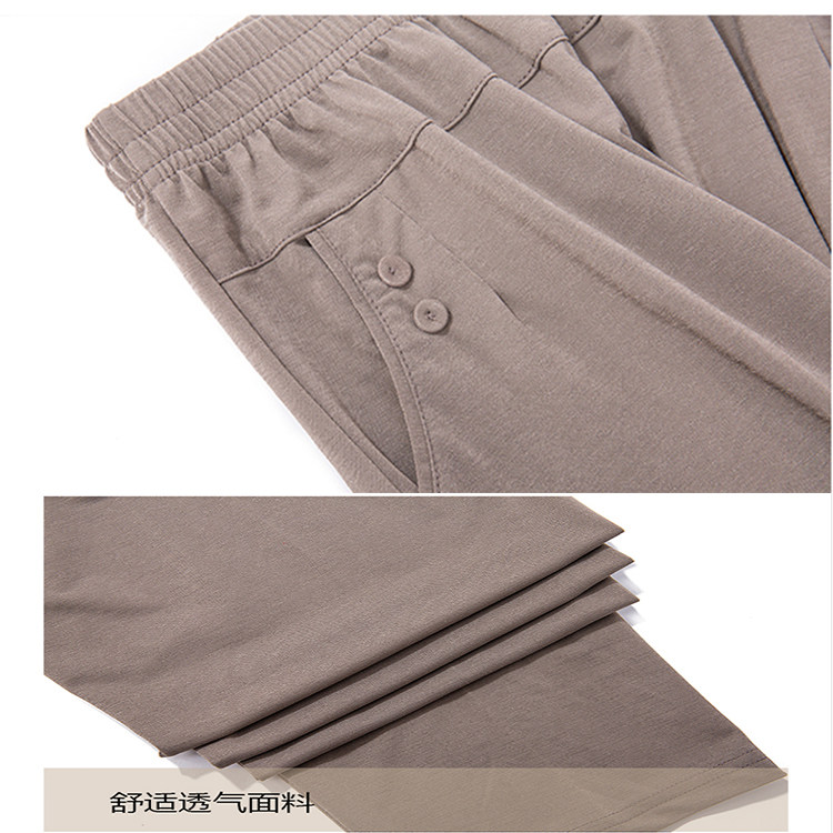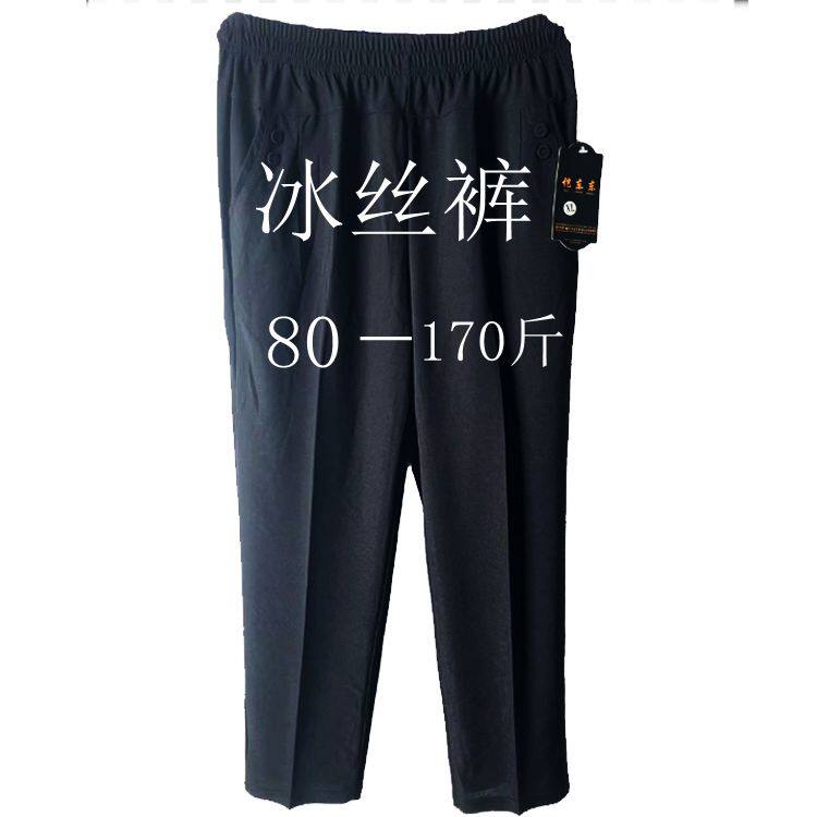 Mom pants thin summer casual summer ice silk women's pants middle-aged and elderly loose high-waist elastic waist nine-point pants