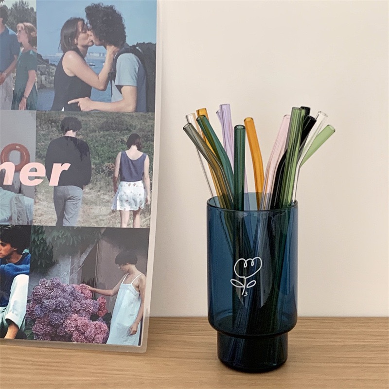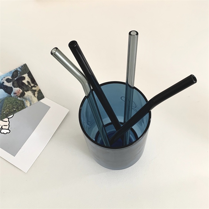 Color Glass Straw Heat Resistant High Boron Silicon Clear Straight Siphon Milk Tea Juice Drink Stainless Steel Fine Straw Suit-Taobao
