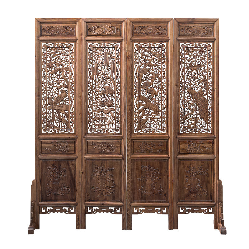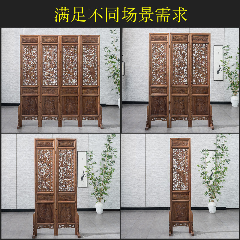 Chinese solid wood folding folding screen wall Living room office Double face door hall Xuanguan Mobile embossed Feng Shui Feng Shui partition seat screen