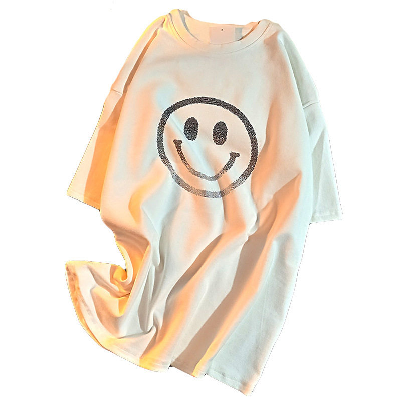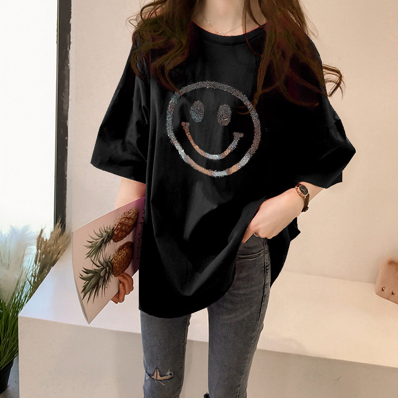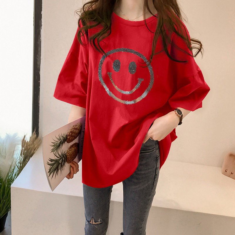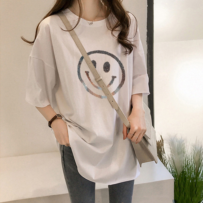 European station mid-length short-sleeved t-shirt women's ins tide 2023 summer new loose and versatile half-sleeved top plus size