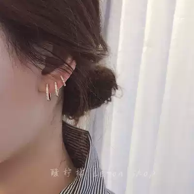 Korean advanced sense base Golden Circle earrings female simple small drill ear bone nail hypoallergenic