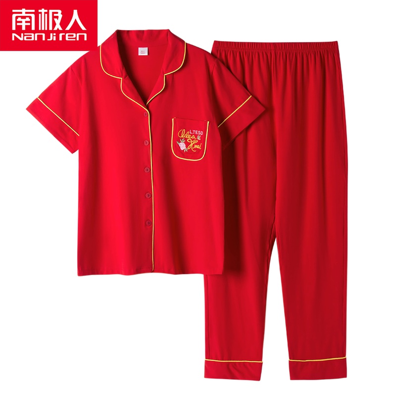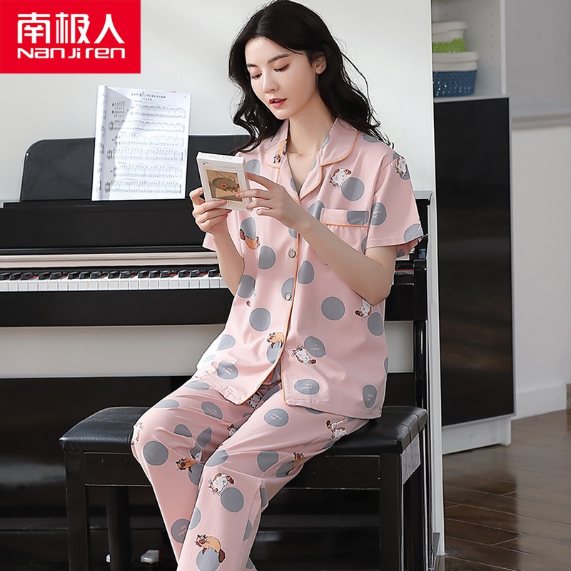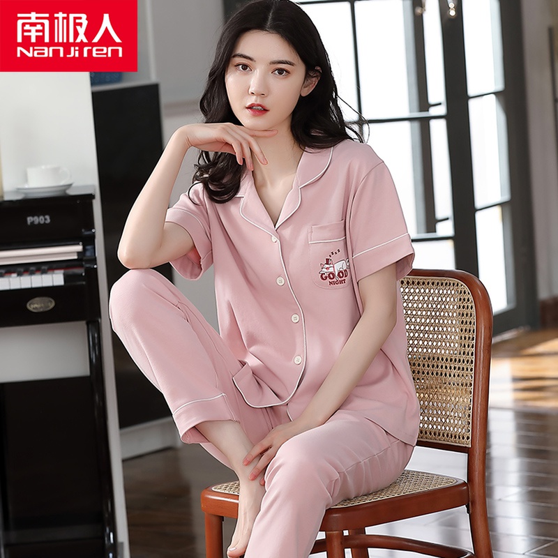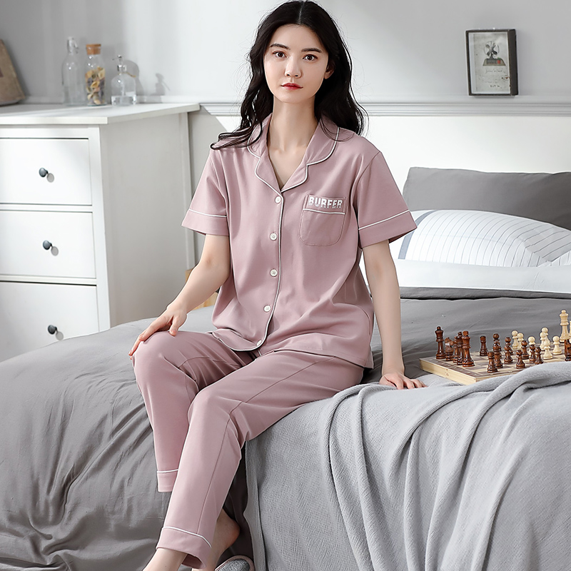 Rough pajamas girl for the life of the year pure cotton short sleeve trousers spring summer Han edition loose all cotton large cotton home suit