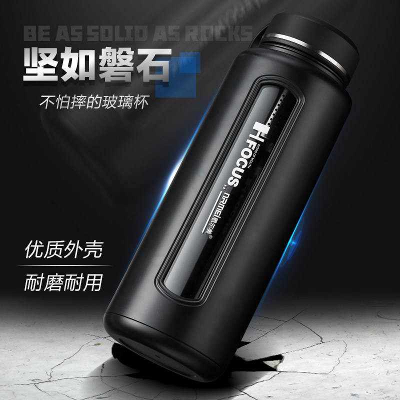 Large capacity large anti-fall glass water bottle water bottle pot portable outdoor tea cup male 1000-2000ML