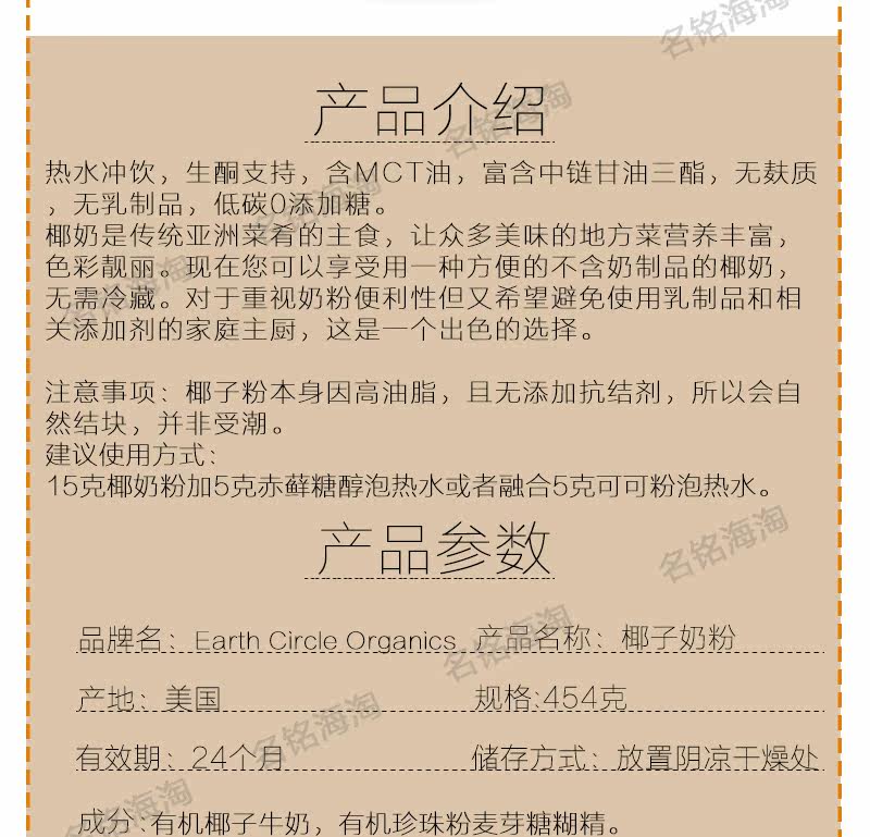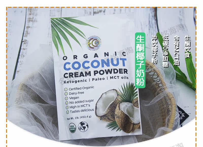 Earth Circle Organics Organic Ketococonut Milk Powder Low Carbon Low Sugar Raw Ketones Brew drinks 453 5g