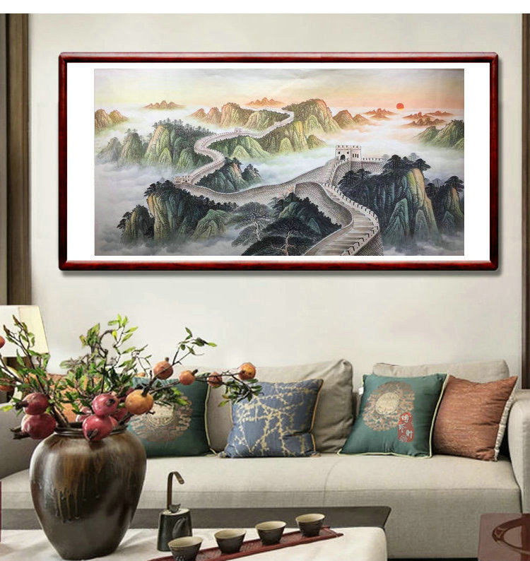 Hand-painted four-foot landscape Chinese painting the Great Wall backing map Xuan paper painting core office living room decoration Fengshui painting