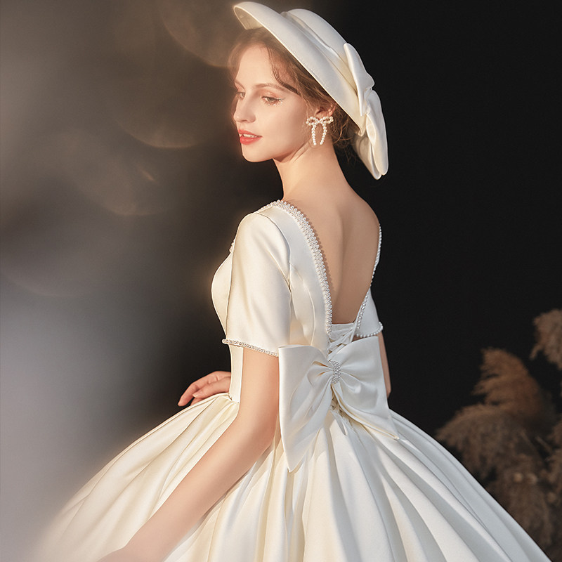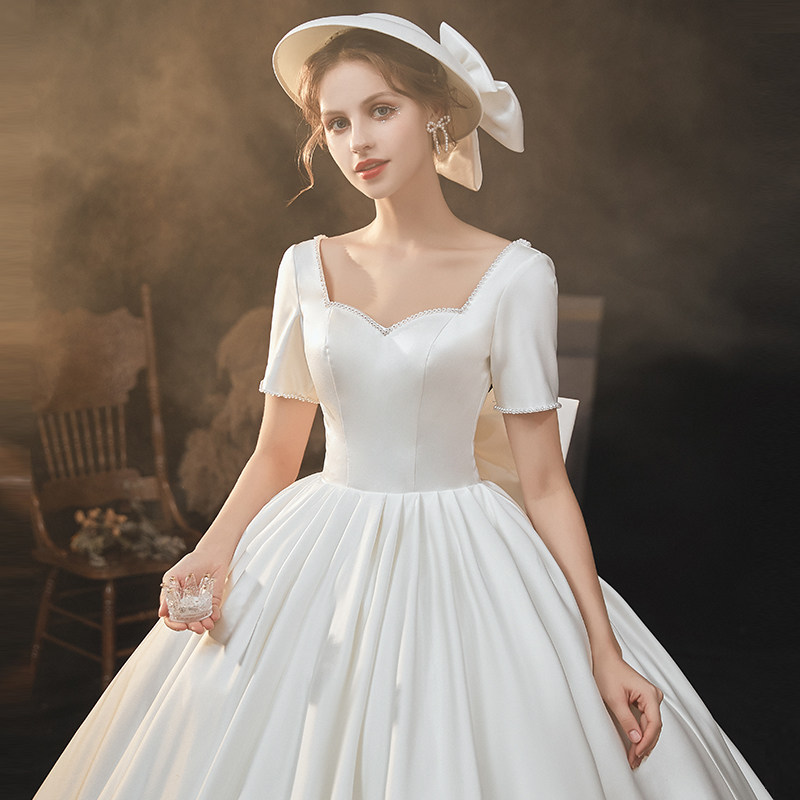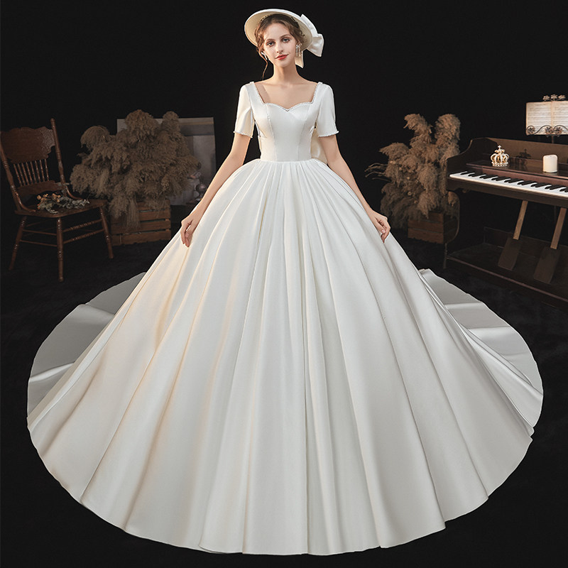 2022 New Sain Wedding Dress Little Individual Simple Atmospheric Reduce Bride Married and Tail Temperance Main Yards
