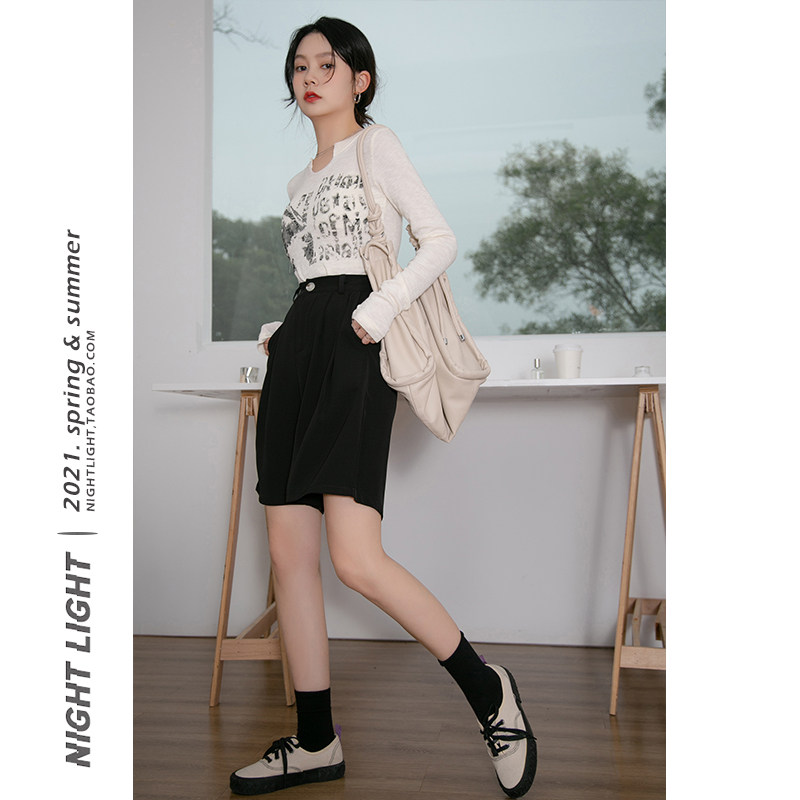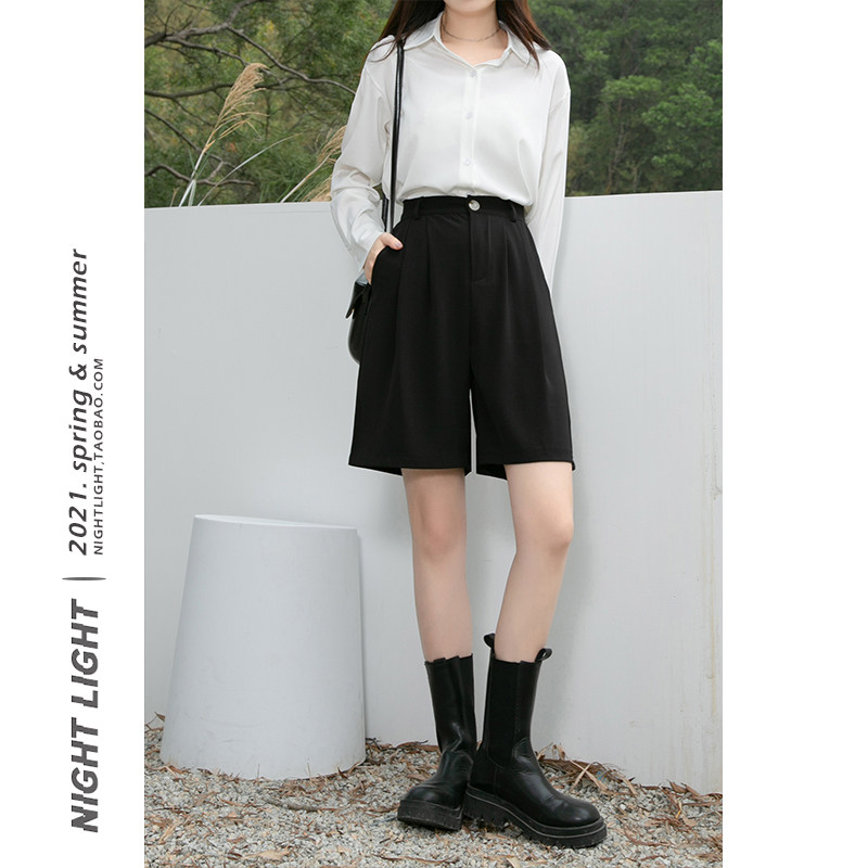 50% Pants Woman 2021 Spring Summer Loose High Waist Pituitary Pants West Dress Pants Straight Barrel 50% Pants Shorts Casual Pants