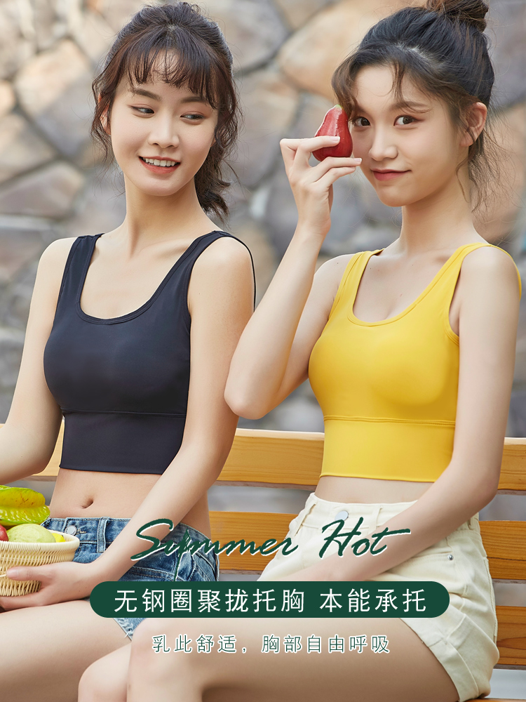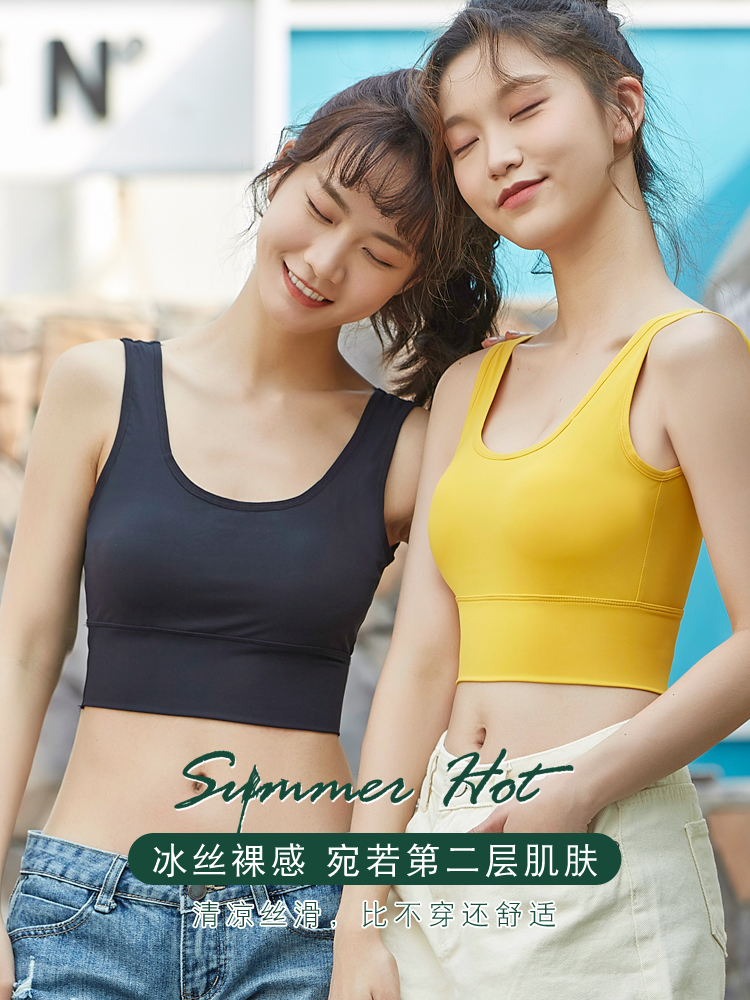 Ice silk beautiful back strap vest strap with chest pad integrated underwear student girl prevents exposure and shock-proof wrapping breasts