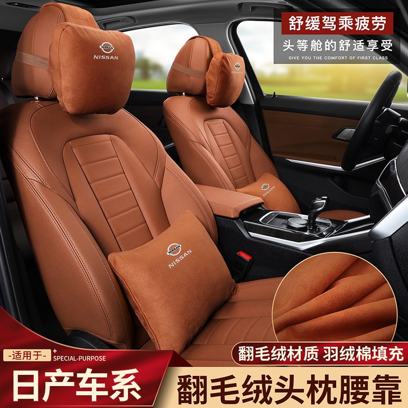 Nissan saddle brown (waist leaning) Nissan beige (waist rest) Nissan beige (head rest back) Nissan Bordeaux Red (waist rest) Nissan Bordeaux Red (headrests) Nissan