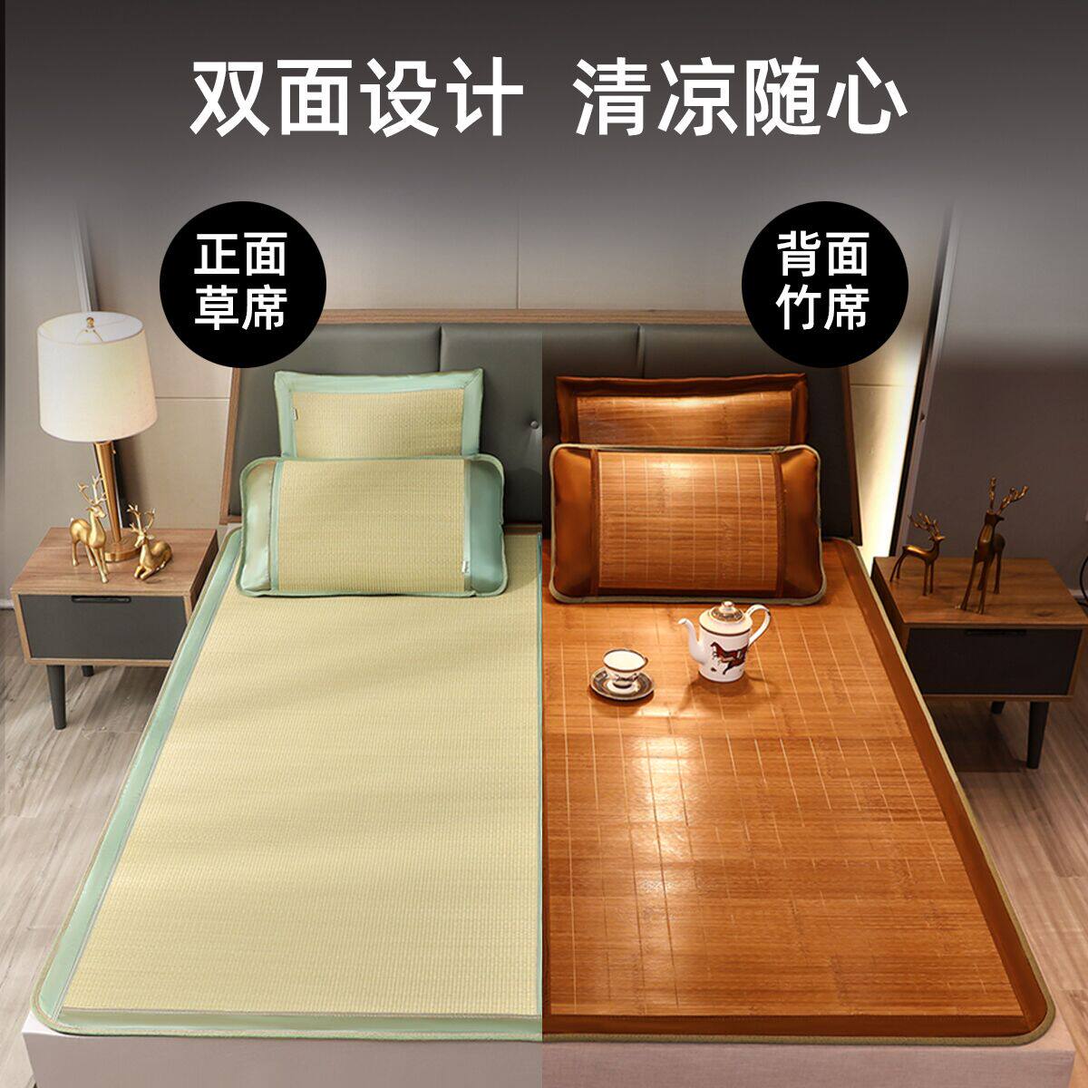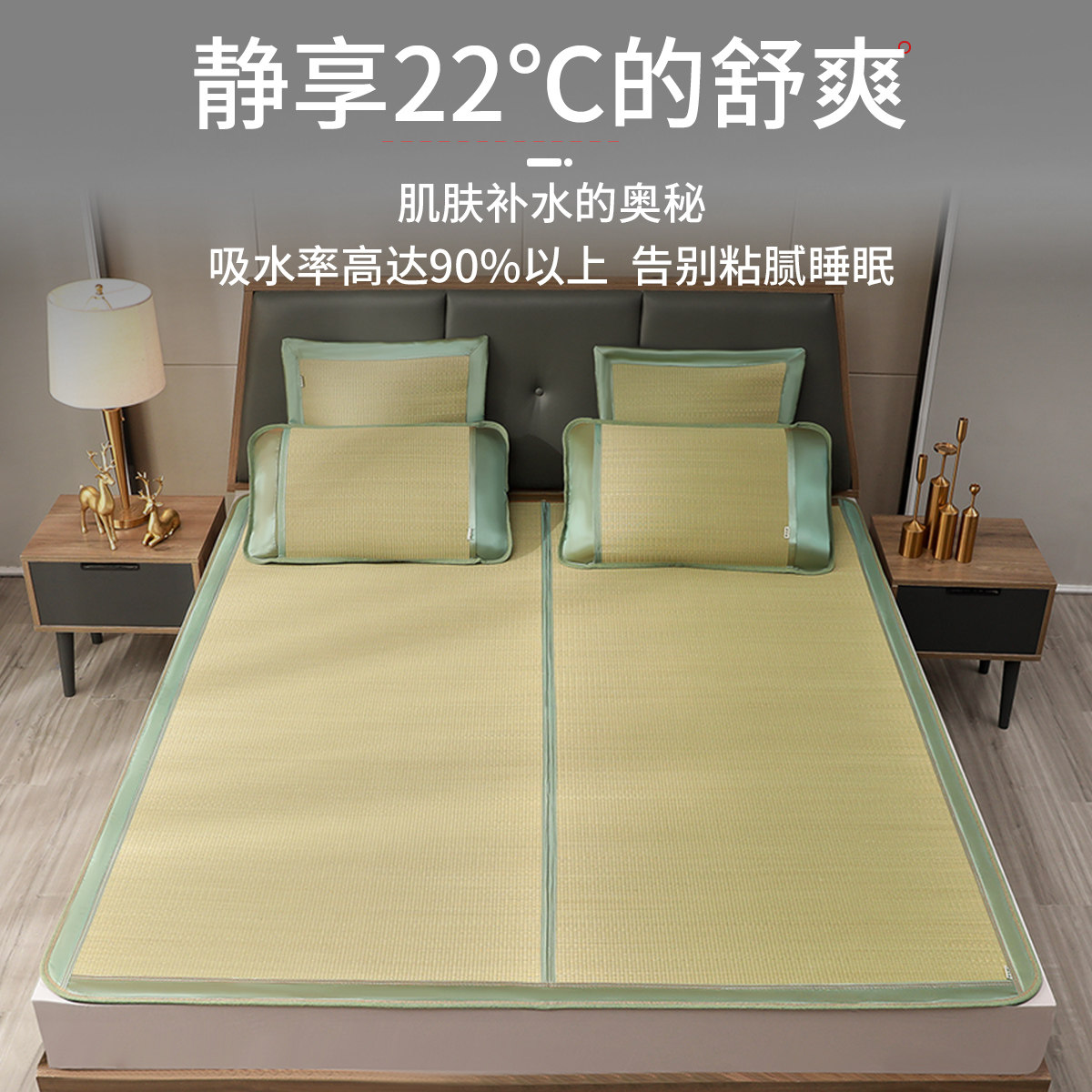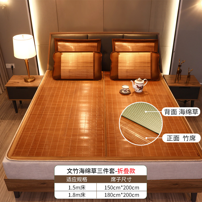 Huanggulin sponge grass Wenba mat three-piece set 1 8 meters foldable double-sided household rush summer bed mat
