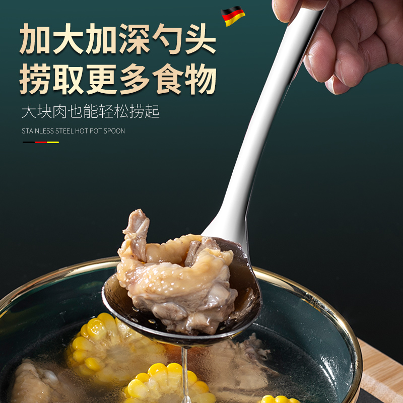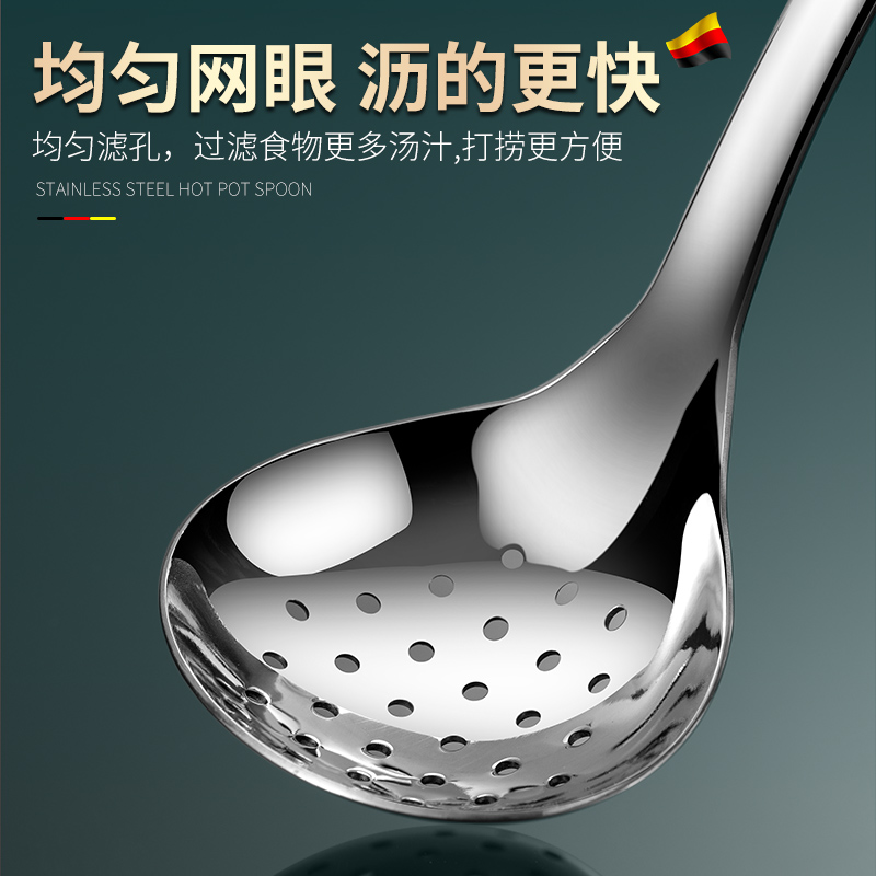 HUYO304 Stainless Steel Soup Spoon Home Long Handle Hot Pot Spoon In the soup spoon Leaking Spoon Suit Home Porridge Spoon Savour