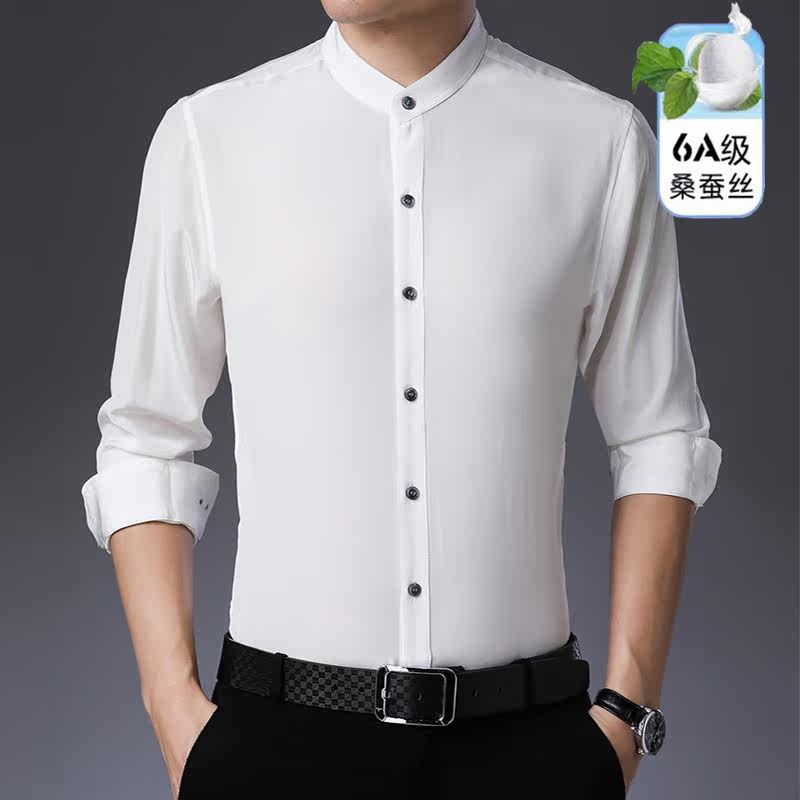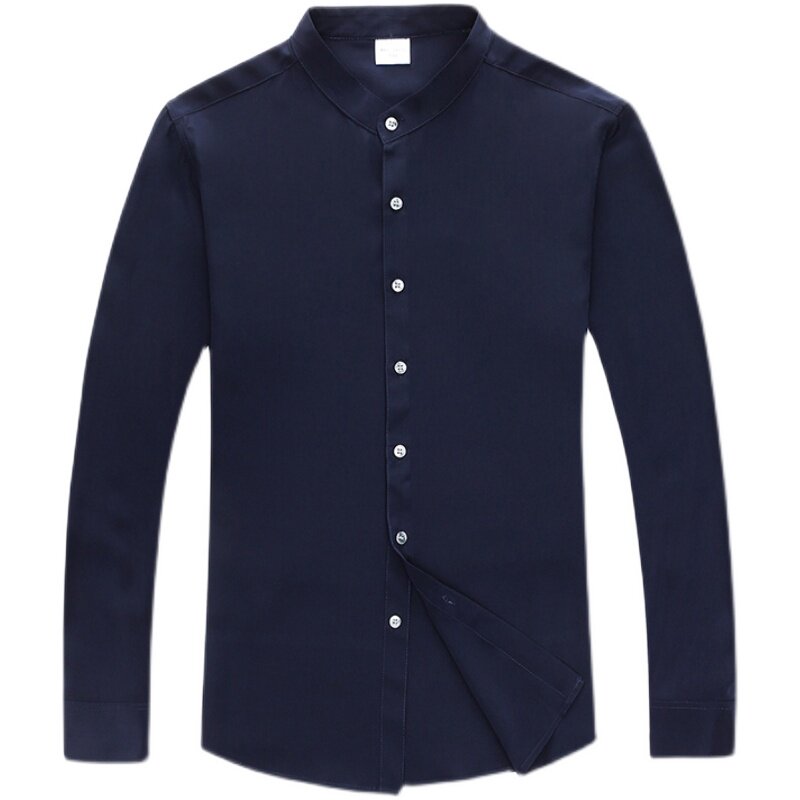 Ordos City's new mulberry silk long-sleeved shirt men's middle-aged high-end silk satin business stand-up collar shirt