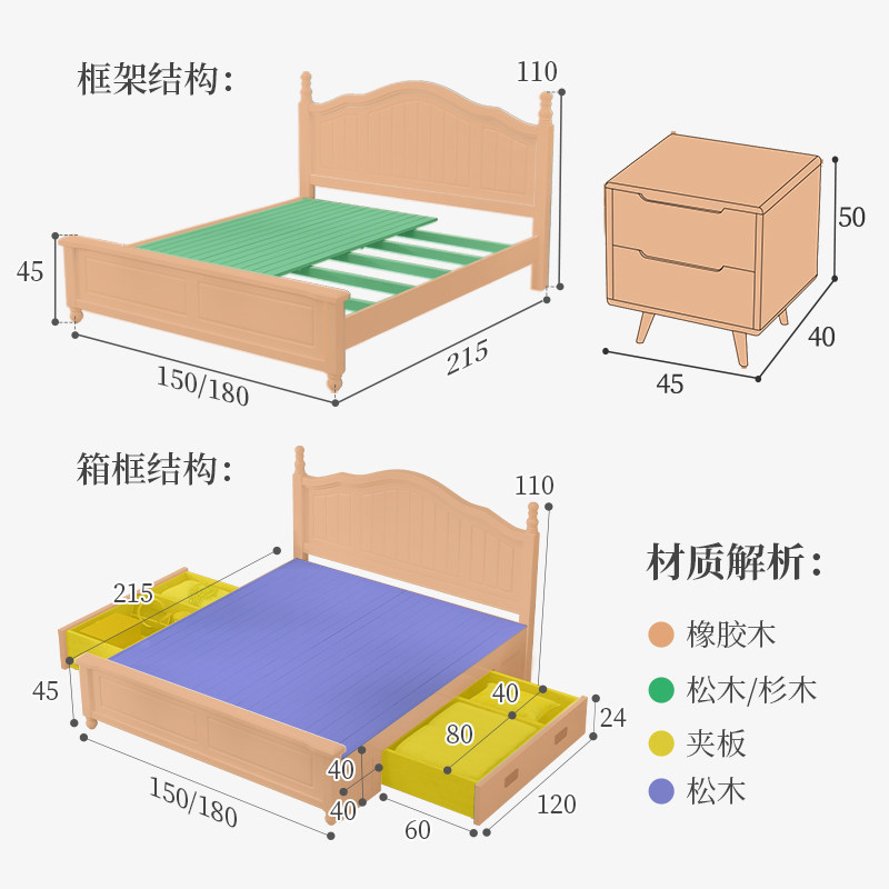 Pure white solid wood plate (bed coconut brown mattress) Pure white solid wood plate (bed coconut palm mattress 1 cabinet) Pure white solid wood plate (bed coconut brown mattress 2 cabinet) Pure white solid wood plate (bed)