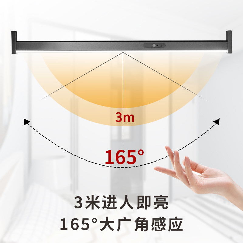 Intelligent LED human body induction clothes pole lamp wardrobe clothes pole charging simple side-mounted fixed clothes pass crossbar home