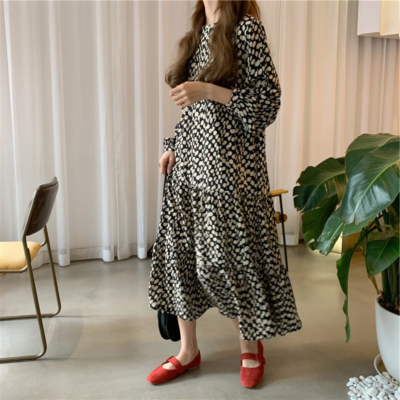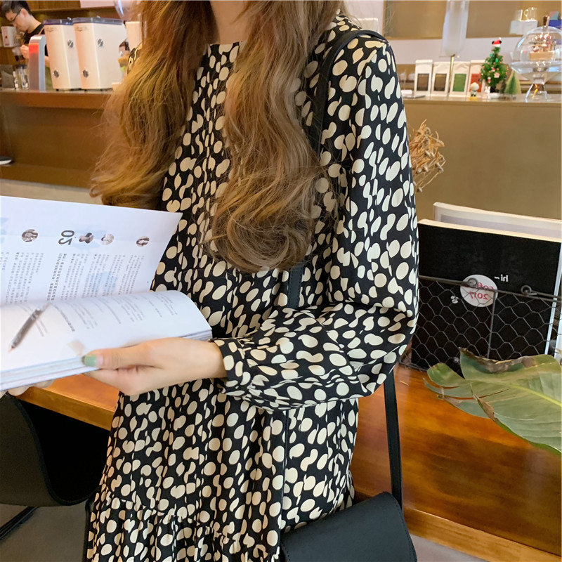 Long dress 2022 Spring autumn season New Hepburn Wind Long Sleeve Crumblea style Fancy Dress Tea Chic little Subwoman
