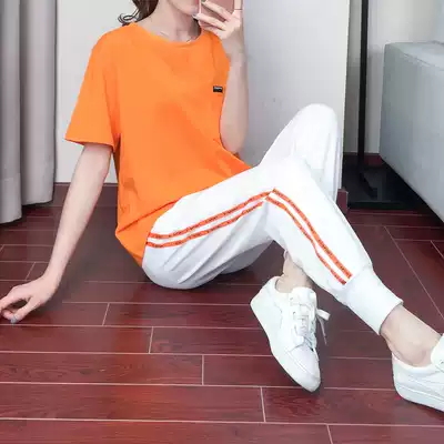 Pregnant women's summer suit pure cotton short-sleeved top T-shirt nine-point pants casual two-piece net red spring and summer Western style tide