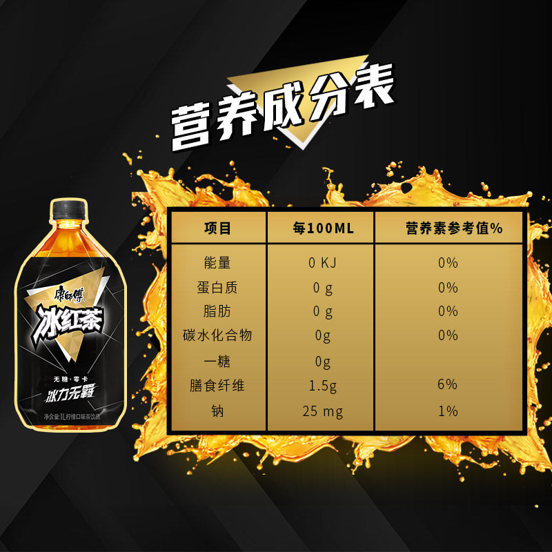 Master Kong sugar-free iced black tea 1L * 12 bottles of lemon black tea beverage drinks