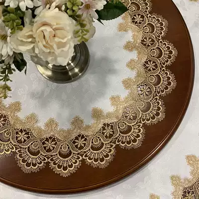 Double-layer round dining table with turntable tablecloth fabric household European large round turning table tablecloth dining room covered garden table mat