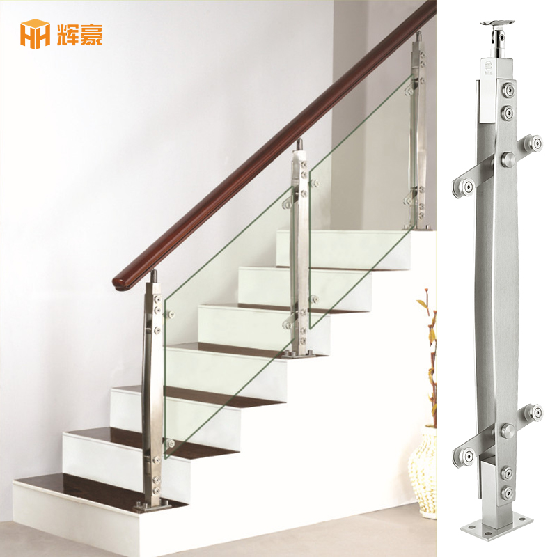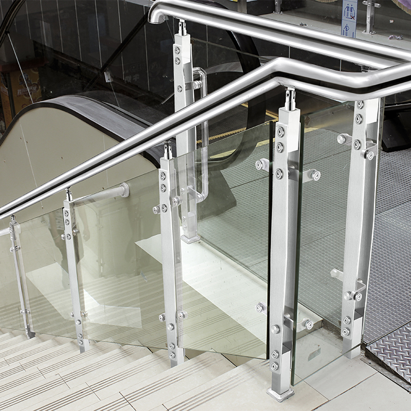 Red glass staircase armrail with stainless steel column railing indoor and outdoor balcony villa modern simple