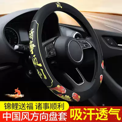 Car steering wheel cover four seasons universal wear-resistant non-slip national tide leather handlebar cover round D-shaped personalized steering cover