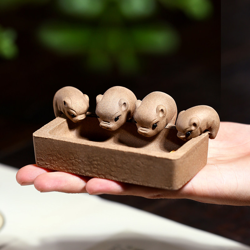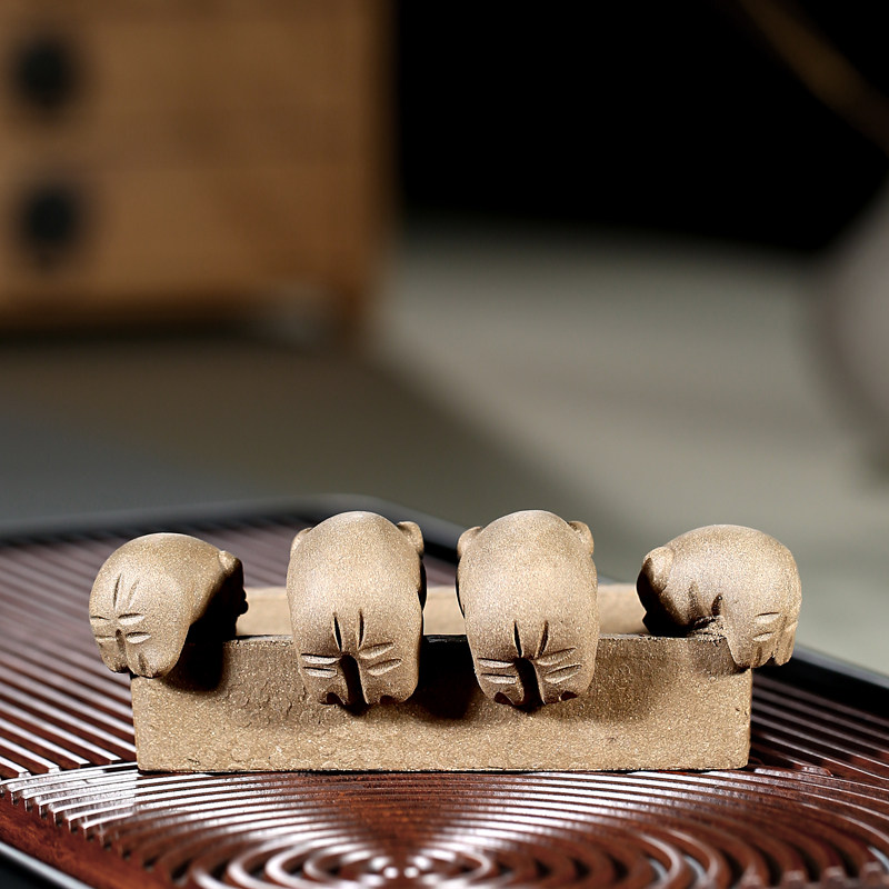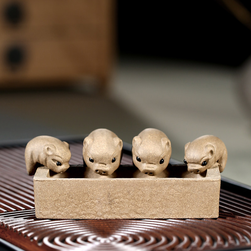 Drink water tank creative handmade Yixing Duan mud purple sand four pig tea play tea pet ornaments well-dressed