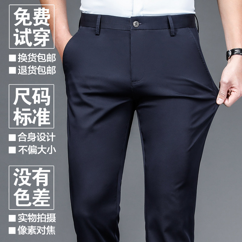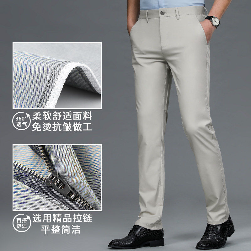 Spring Summer Elasticity Men Casual Long Pants Loose Straight Drum Slim Fit Slim Fit Suit Pants Business Positive Suit Men's Pants