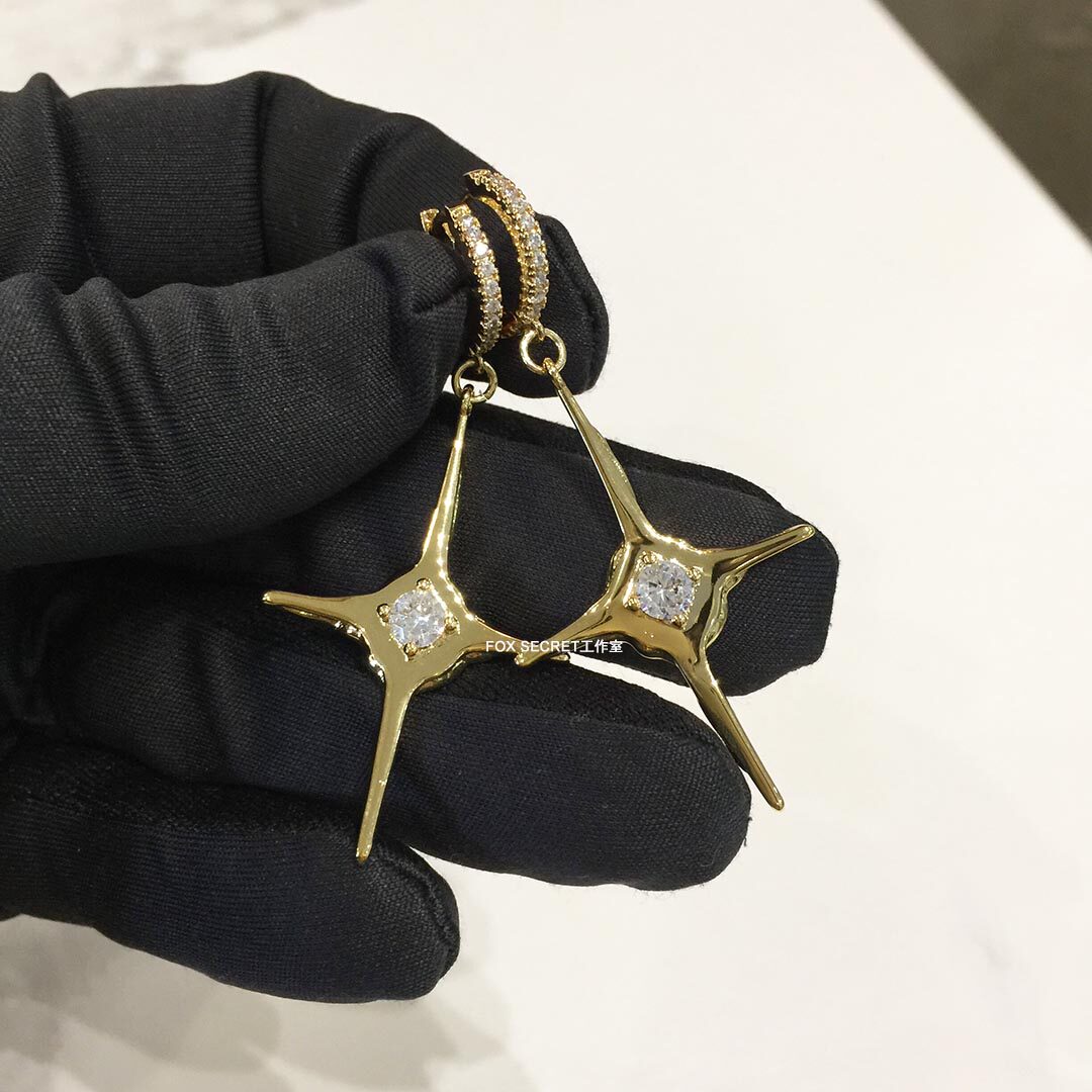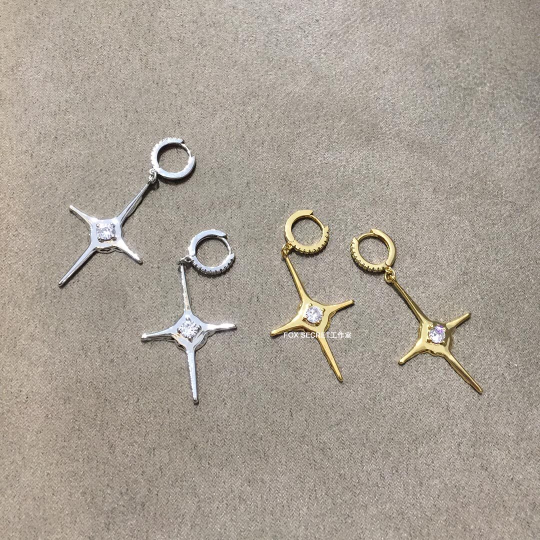 2021 new four-manging star cross-inlaid diamond earrings earrings with the same type of European and American hip-hop senior sensation and small crowdsourced