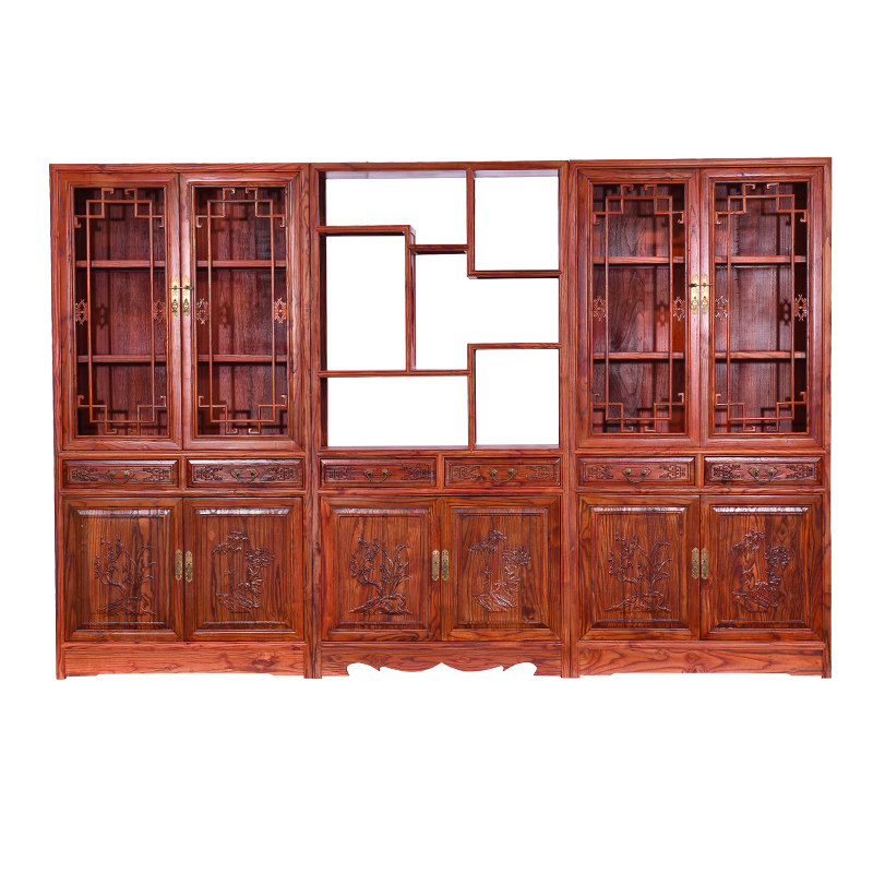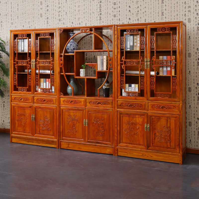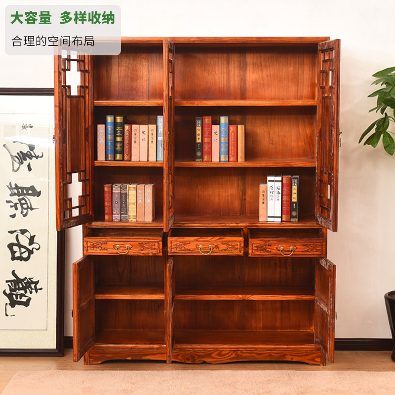 Full solid wood Ming and Qing dynasty bookcase Chinese-style antique book cabinet shelf South elm display cabinet study locker display cabinet showcase