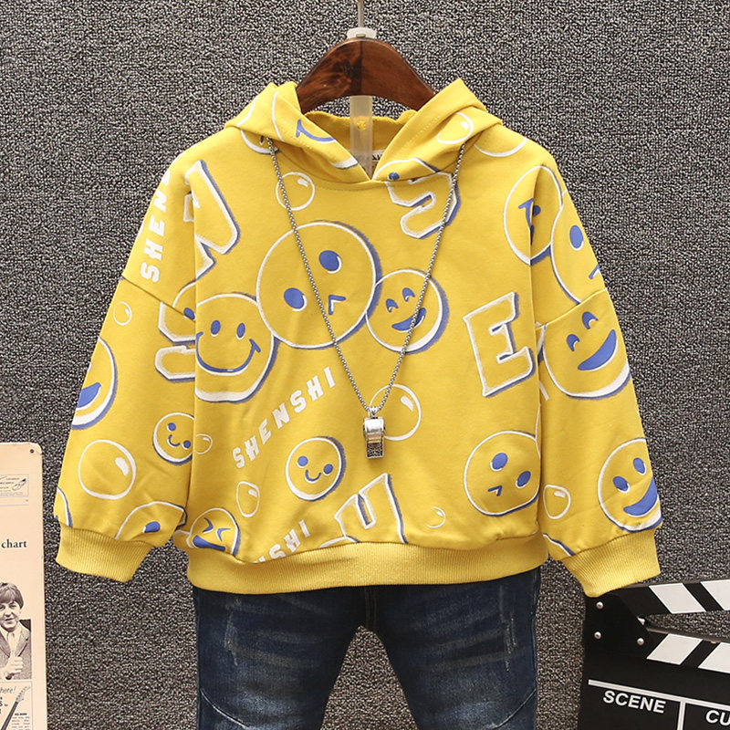 2022 Autumn loaded with new boy necropolis Han version childrens Long sleeves printed cartoon in children's undershirt with a hat baby