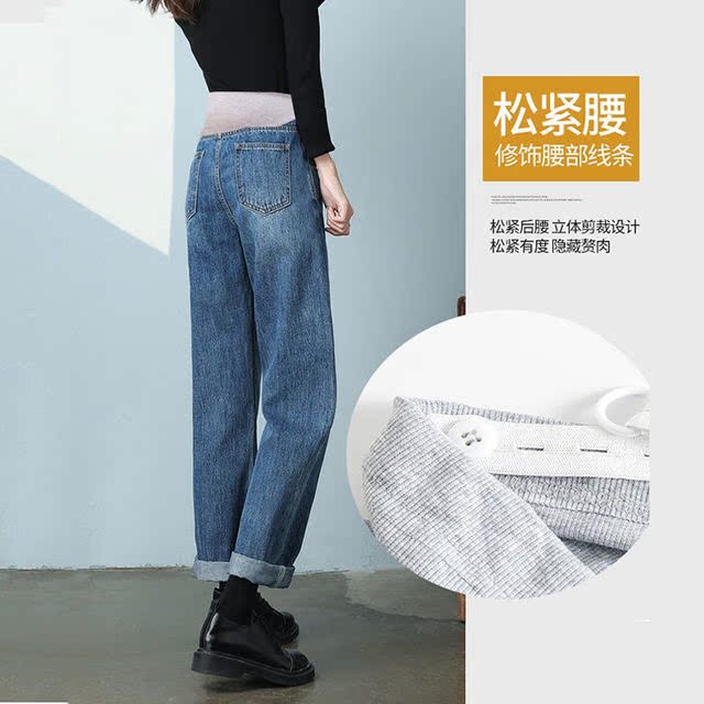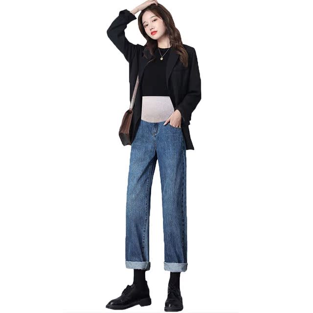 Pregnant women wide-legged pants Spring and summer wear fashion trend mom's belly pants loose thin thin thin denim pants