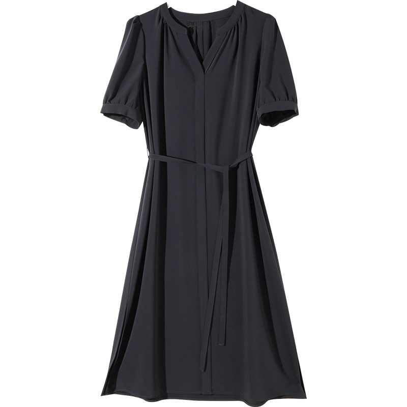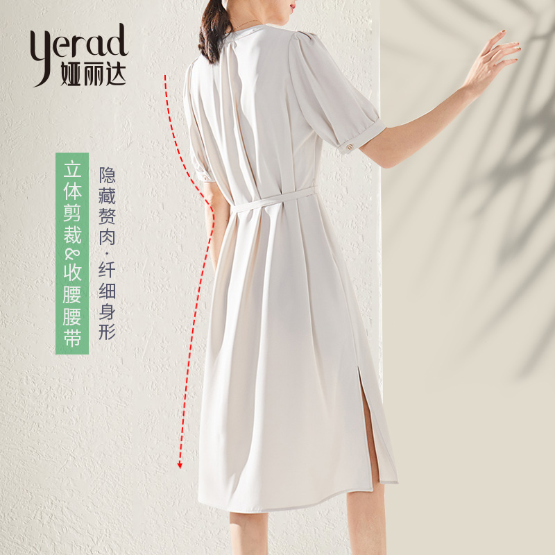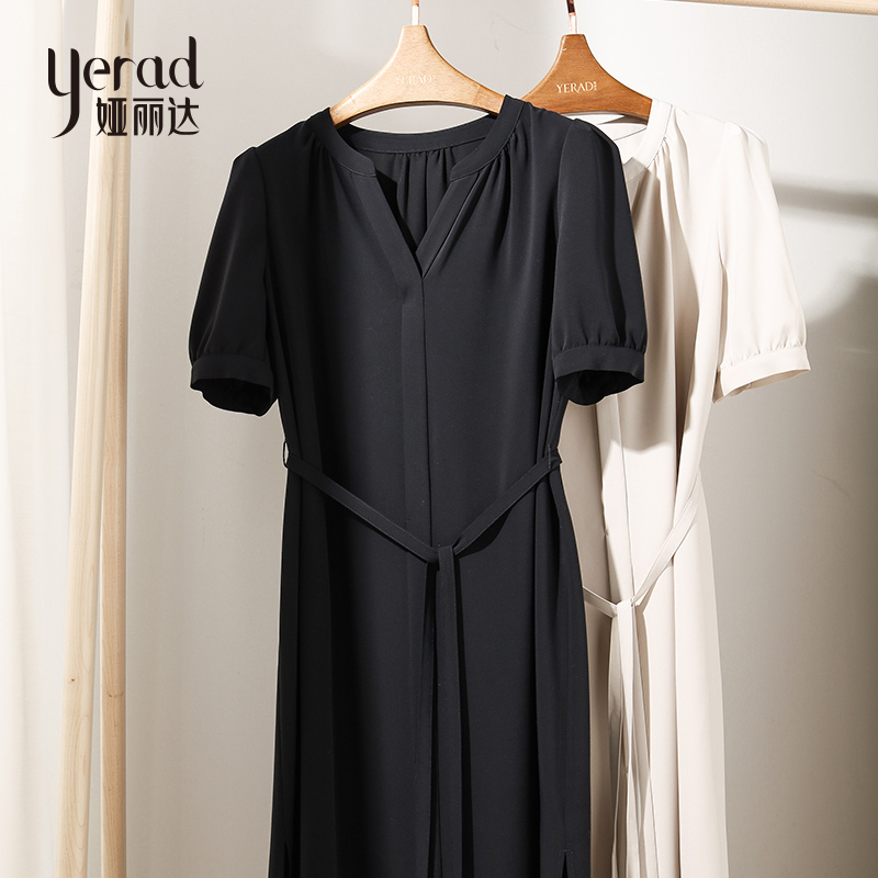 Ya Lida Method V Collar Foreign Dress Woman Thin 2022 Xia's new gentle wind and thin temperament snowspun skirt