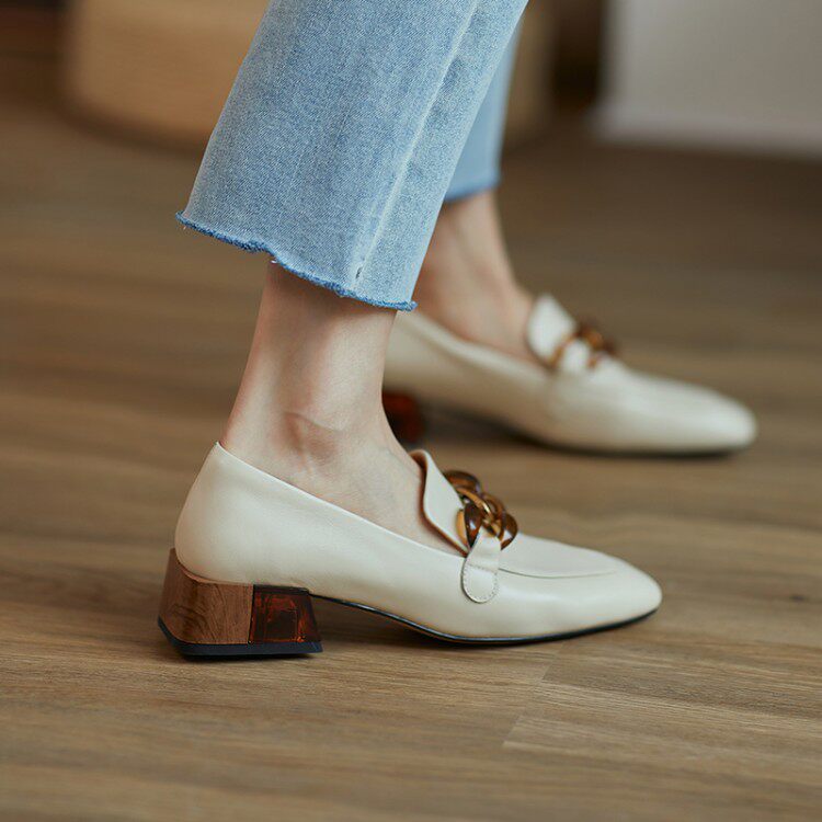 Givenivan comfortable to blast metal buckle square head shoes new crystal follow casual Lefoe shoes flat heel