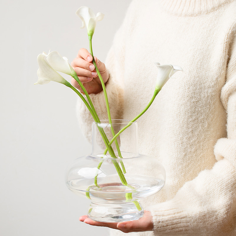 Foreign peony vase horse drunk wood snow willow big round belly wide mouth bottle glass French light luxury decoration net red ins wind
