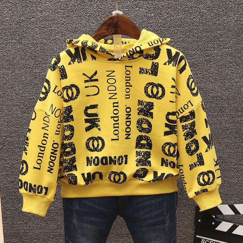Children's sweatshirt bottom-shirt 2022 Chunqiu boy letters printed long sleeve blouses with children covered with hat clothes