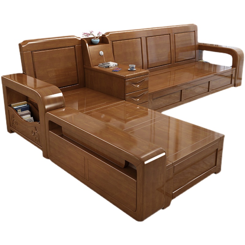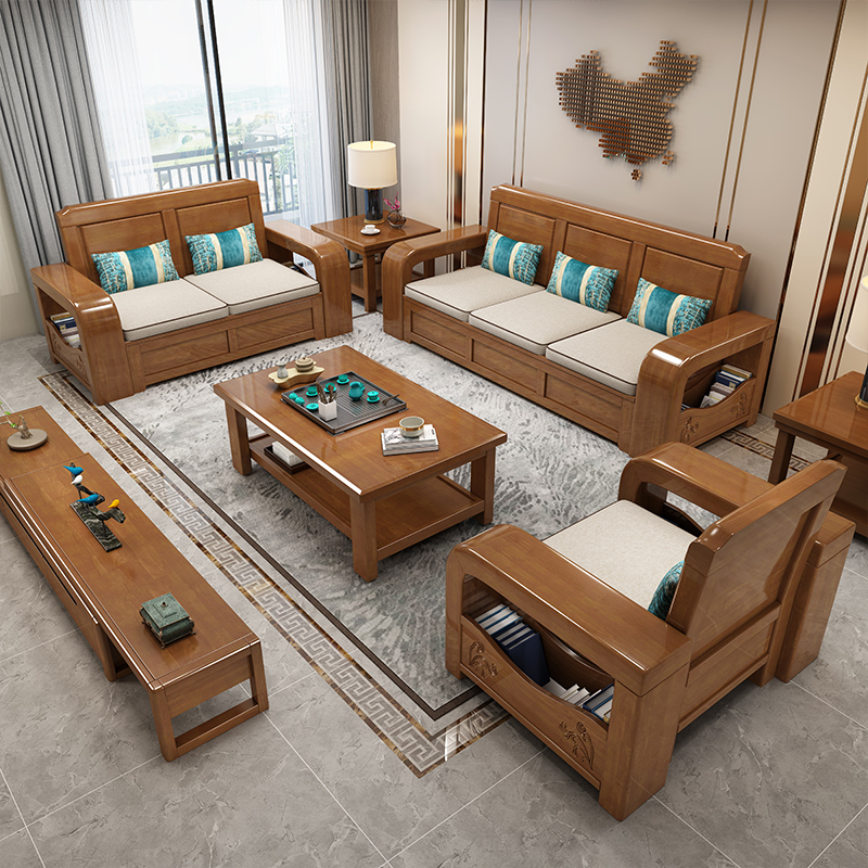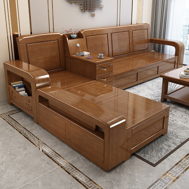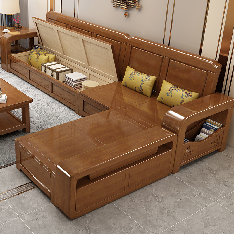 New Chinese-style solid wood sofa living room all solid wood small apartment combination winter and summer dual-use storage high box original wood sofa