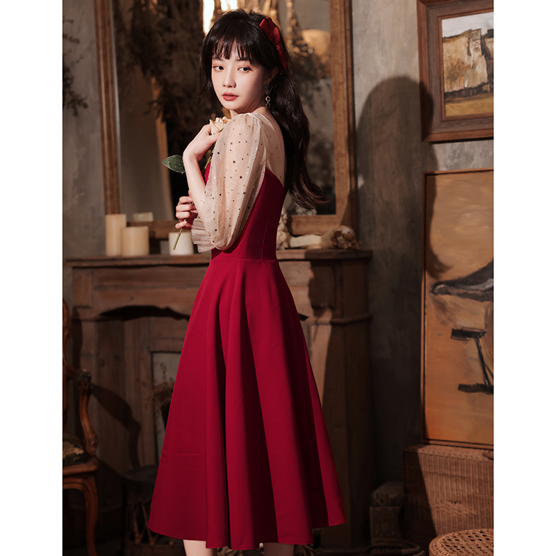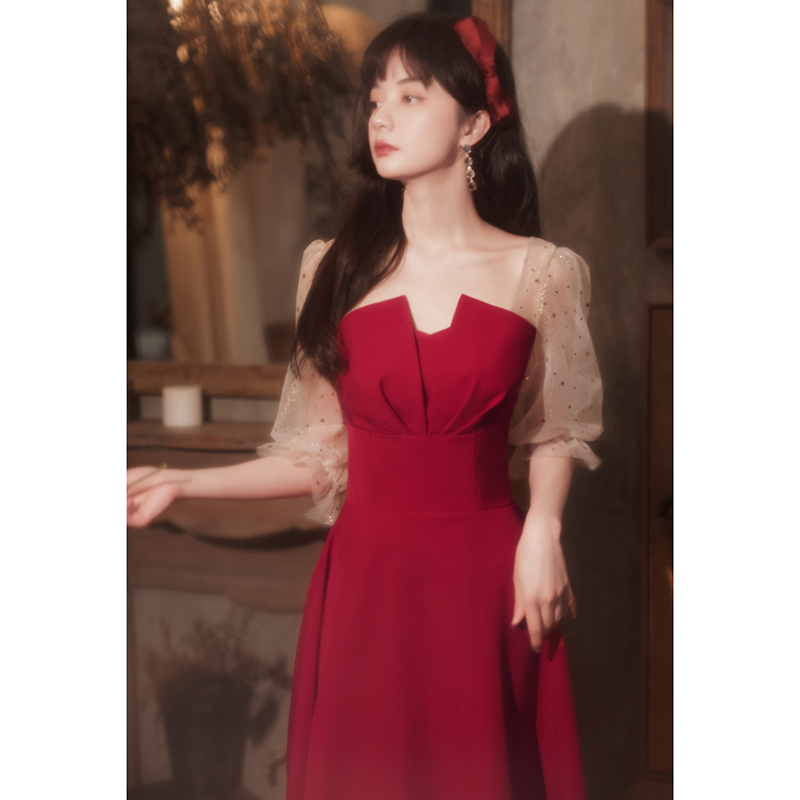 Toast bride small guy can usually wear engagement dress dress dress dress summer red back door to thin French
