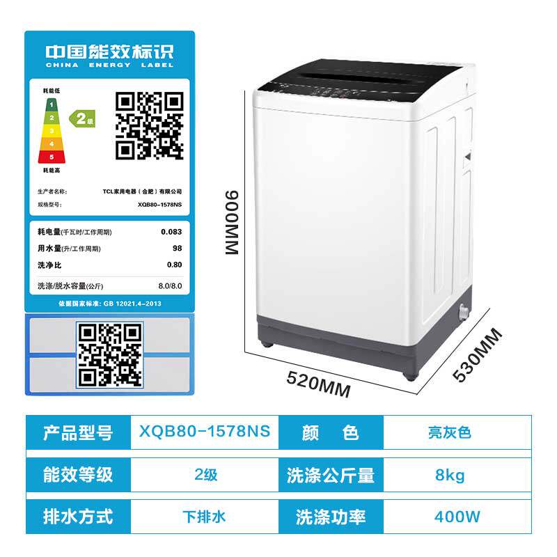 TCL mini automatic silent energy-saving pulsator 8kg large-capacity household wheel washing machine