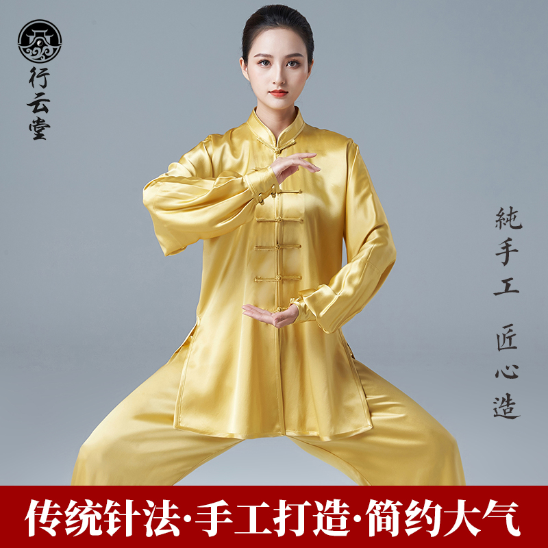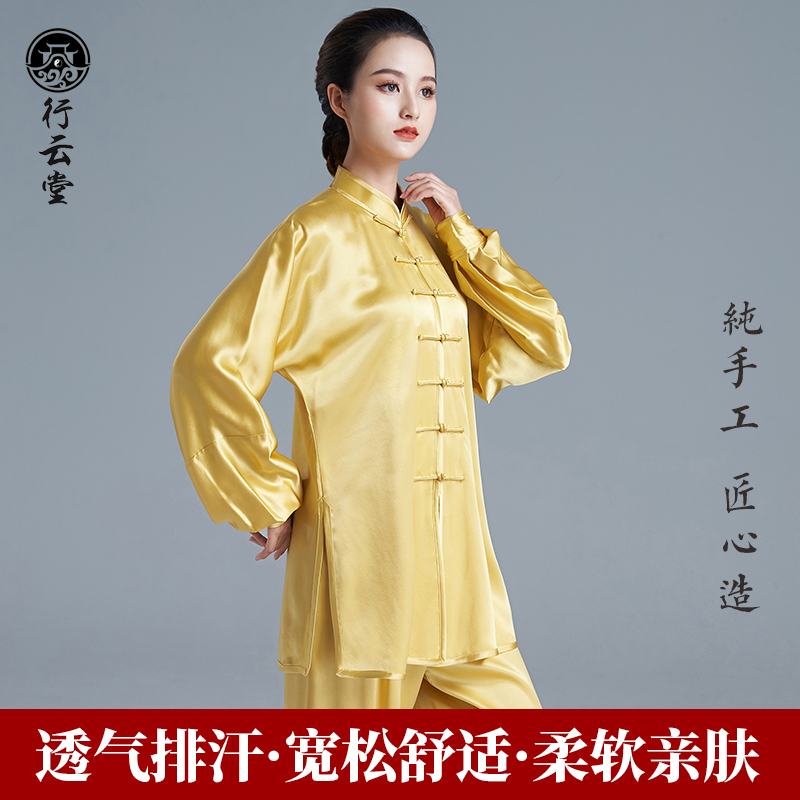 Line Cloud Hall Yellow mulberry silk Heavy Genuine Silk Taiji Costume Women's New Summer Taijiquan to perform the spring and autumn men's clothing
