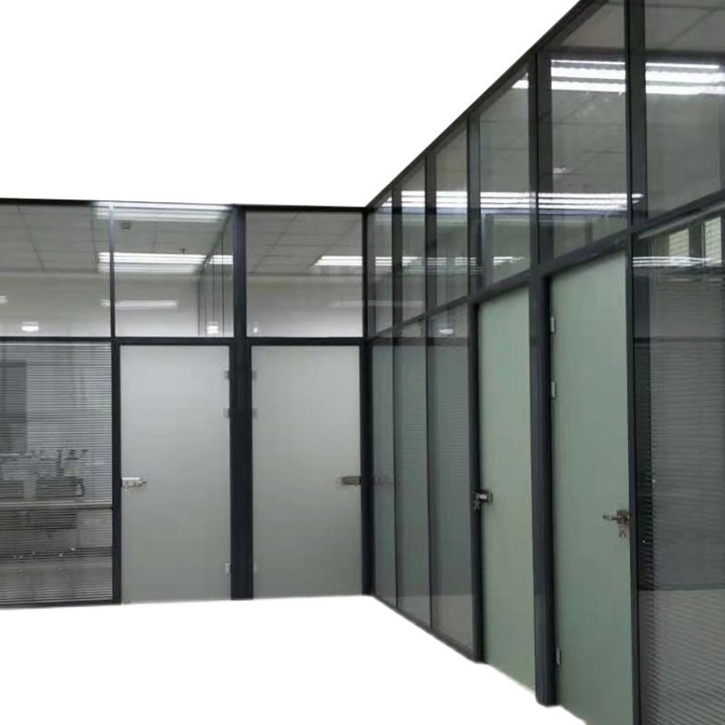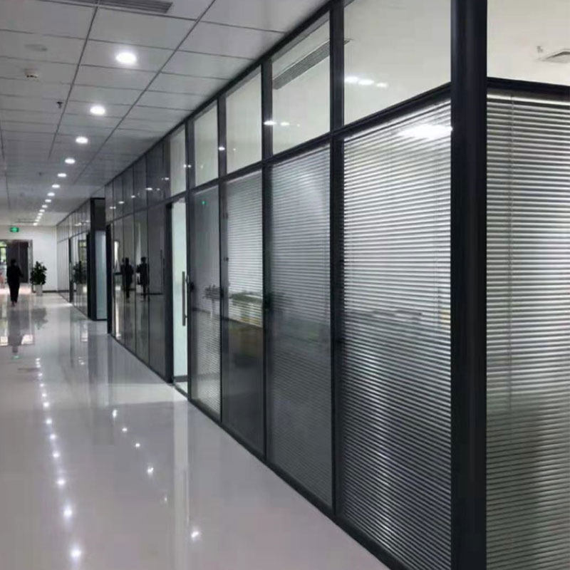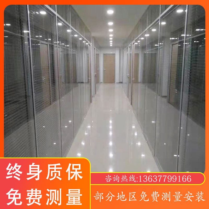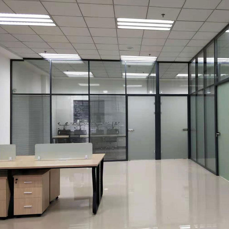 Chongqing office glass high partition aluminum alloy tempered frosted partition wall louver screen automatic door office