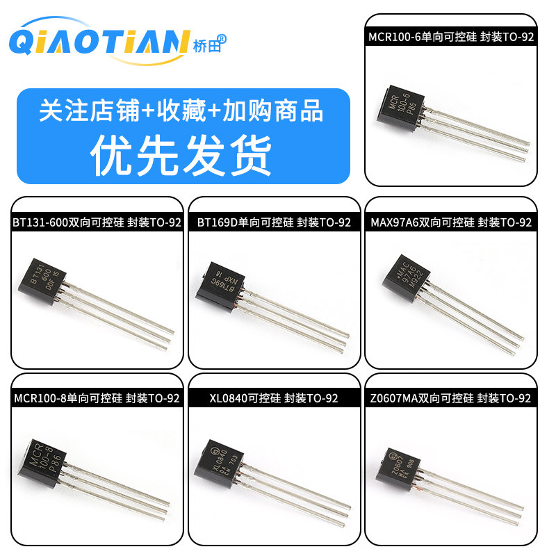 MCR100-6 unidirectional controllable 0 8A 8A 400V 400V straight insert package TO92 (10) BT131-600 bidirectional controllable silicon 1A