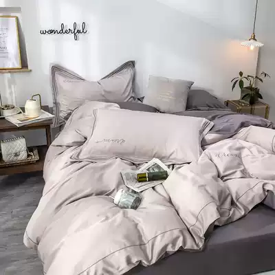 High-end light luxury wind cotton cotton four-piece set 60 long staple cotton simple European style solid color sheets quilt cover summer
