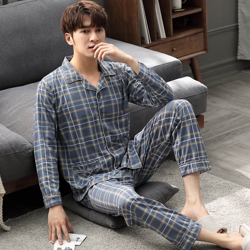 Antarctic men's pajamas men's pure cotton spring and summer long-sleeved loungewear suit cotton thin section 2021 new