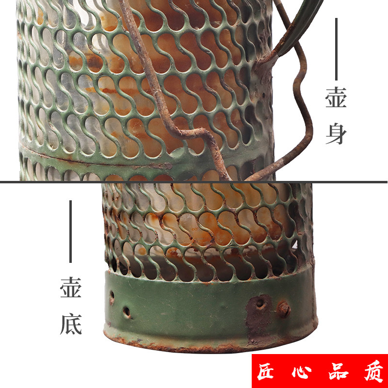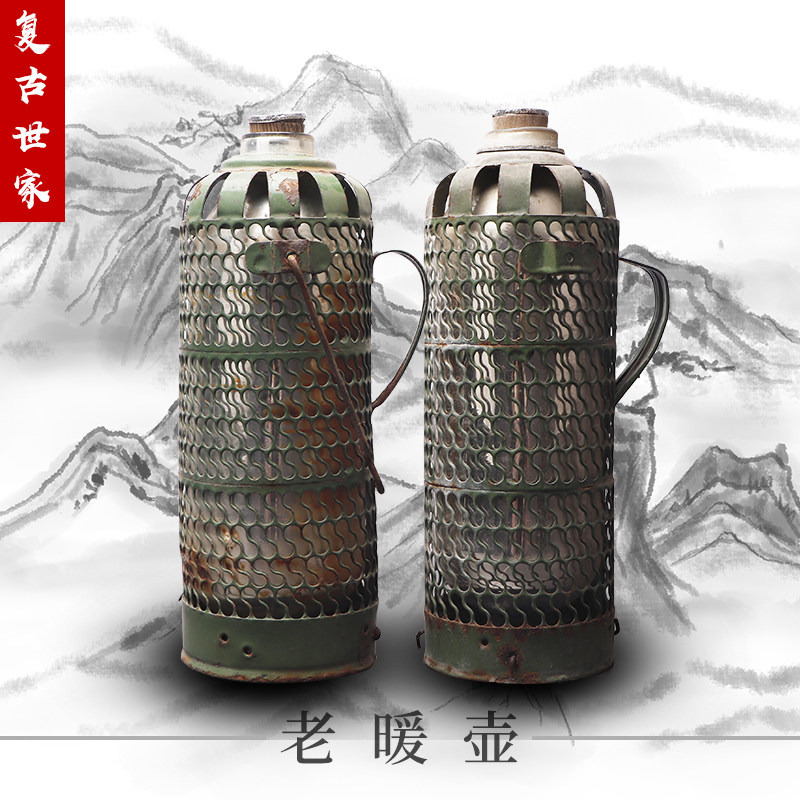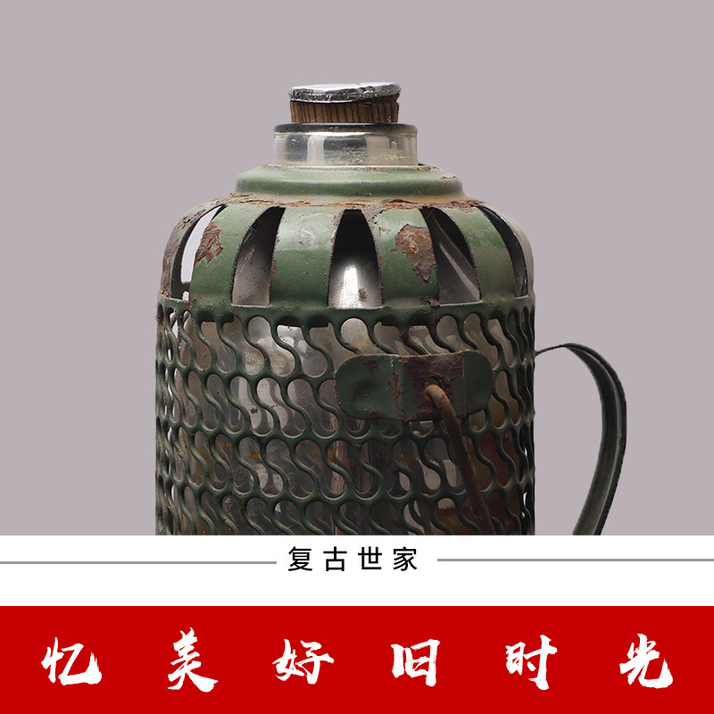 Folk old objects nostalgic collection old thermos old thermos Green tin thermos farm house decoration decoration