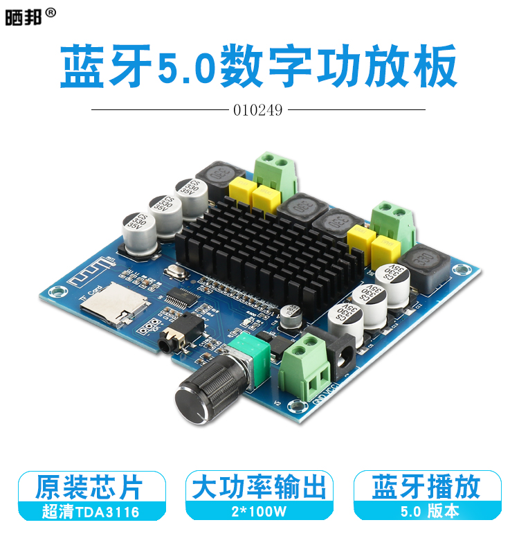TPA3116 Bluetooth 5 0 digital power amplifier board ultra-clear experience support TF card AUX synchronous input 100W* 2-Taobao